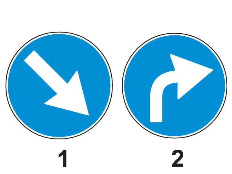 Primul indicator este ‘Ocolire’ iar cel de-al doilea este ‘La dreapta’.
