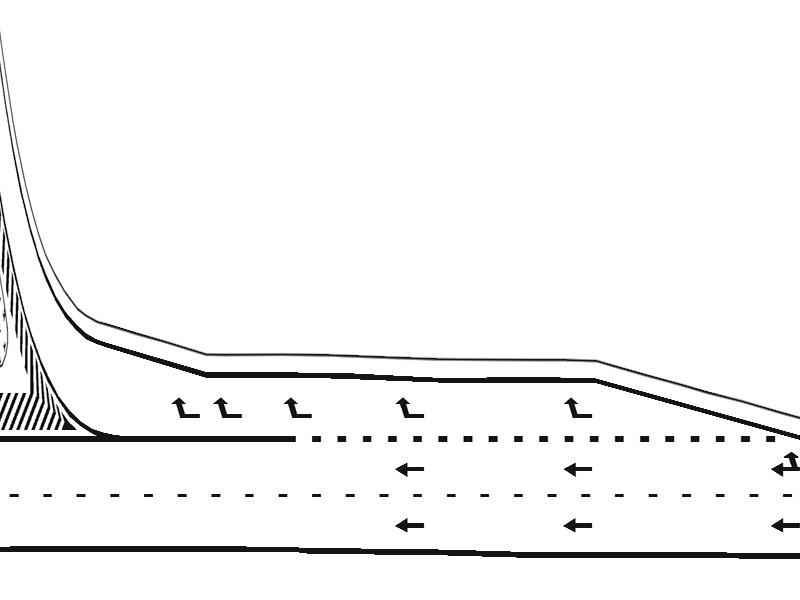 Acest semn rutier reprezintă o marcaj aplicat pe o porțiune de drum destinată reducării vitezei. Această porțiune de drum este folosită pentru a efectua un viraj la dreapta provenind de pe un drum cu prioritate sau de pe o autostradă. În timpul efectuării virajului la dreapta, șoferii sunt obligați să conducă cu o viteză care să nu depășească 30 km/h în zonele urbane sau 50 km/h în zonele rurale, asigurând în același timp că nu împiedică fluxul celorlalte vehicule.