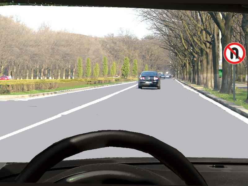 b) în intersecţiile în care este interzis virajul la stânga, precum şi în cele în care, pentru efectuare, este necesară manevrarea înainte şi înapoi a vehiculului;
