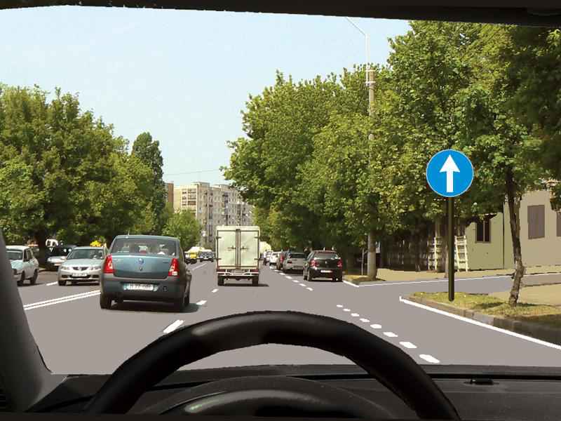 b) în intersecțiile în care este interzis virajul la stânga, precum și în cele în care, pentru efectuare, este necesară manevrarea înainte și înapoi a vehiculului;.